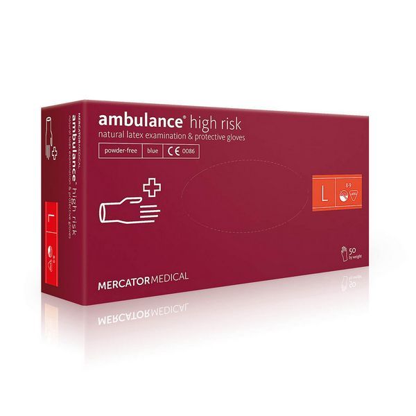 Рукавички латексні нестерильні неприпудрені (ціна за 50пар) L AMBULANCE High Risk, ПДВ 7% Це надійні латексні оглядові та захисні рукавички з подовженим манжетом , призначені для роботи у середовищах з високим рівнем ризику. Вони забезпечують максимальний захист від вірусів , хімічних речовин та цитостатиків, зберігаючи при цьому комфорт у використанні. висока міцність та еластичність-витримують розривну силу від 6 N та зберігають еластичність навіть при старінні. Подовжений манжет 295мм - додатковий захист у критичних умовах . Текстурована поверхня -надійне захоплення інструментів у сухому та вологому середовищі Сумісні в контакті з харчовими продуктами- відповідають вимогам ЄС щодо безпечності матеріалів у контакті з іжею.