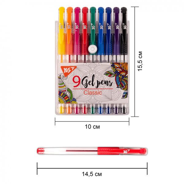 Набір ручок гелевих 9 кольорів Classic YES