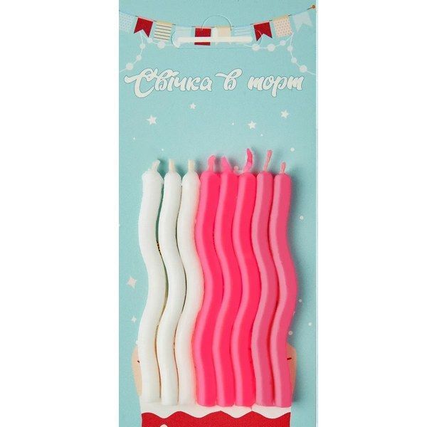 Відмінний декор для святкових тортів на День Народження. Яскраві, кольорові кручені свічки в рожевих тонах на торт. Купити свічки кручені для дівчинки від виробника в торт можна в нашому інтернет-магазині. кручені. Матеріал: віск свічковий високоочищений. Посипка: відсутня. Висота - 8 см, товщина - 6 мм. Упаковка: індивідуальна.