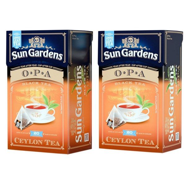 Чай Sun Gardens 2грх20пак.пірамідки ОПА чорний крупнолистовий Чай чорний Sun Gardens OPA — це високоякісний байховий цейлонський чай із великими листками, що дарує насичений смак і багатий аромат у кожній чашці. Пірамідальна форма пакетиків дозволяє листю вільно розкриватися під час заварювання, відтворюючи повний смаковий букет і насичений аромат. Чай Sun Gardens OPA ідеально підходить для ранкового або післяобіднього чаювання, самостійно або з додаванням лимона, меду чи молока. Великі листки забезпечують класичний насичений смак із легкою терпкістю та глибоким ароматом, що створює атмосферу затишку та витонченості. Упаковка з двома коробками зручно зберігати і використовувати, а продукт стане чудовим вибором для дому, офісу або подарунка. Обираючи Sun Gardens OPA, ви отримуєте преміальний чорний чай для щоденного задоволення та справжніх чаювань.
