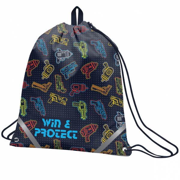 Габарити: 40х35 см, Основний матеріал: поліестер. Особливості: Сумка для взуття на одне відділення і кишенею на задній стінці. Ручка-петля для зручного розміщення. Стильний та яскравий принт порадують навіть найвибагливіших сучасних дітей, зручний формат дозволяє переносити в сумці не тільки взуття, а й інші речі.