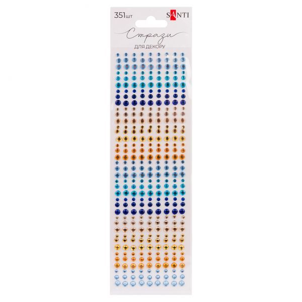 Набір стразів на клейовій основі Colour mix блакитні/золоті 351шт Santi