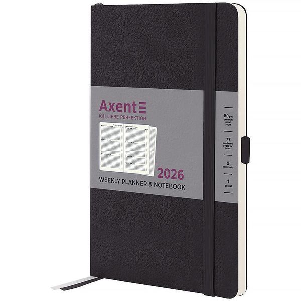 Тижневик датований Axent 2026 А-5- Partner Soft Skin на гумці, чорна гнучка обкладинка, кремовий папір
