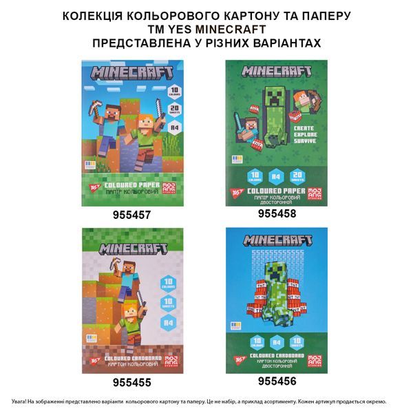 Папір кольоровий двосторонній А-4 20арк Minecraft Yes