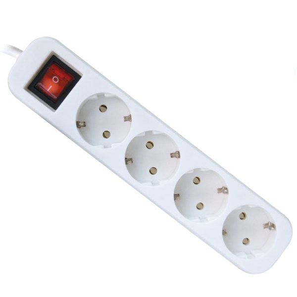 Подовжувач 4р+3м+заземлення+вимикач, білий Defender