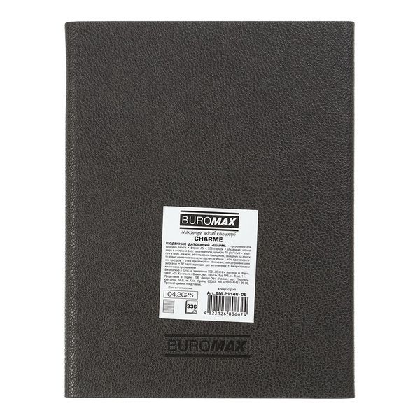 Жорстка обкладинка з фактурної штучної шкіри щоденника CHARME виконана в форматі портмоне - має глибокий клапан з оригінальним хвилеподібним краєм, який застібається на лицьовій стороні на магнітну застібку. Гармонійно доповнює дизайн елегантне сліпе тиснення та тонований в колір обкладинки зріз внутрішнього блоку. Формат А5 336 сторінок Внутрішній блок: офсетний папір кремового кольору щільністю 70 г/м² Закладка-лясе в колір обкладинки Перфоровані куточки аркушів Друк блоку в 2 кольори: сірий і бордовий Дві мови блоку: українська, англійська Форзаци в колір обкладинки Індивідуальна упаковка: картонна коробка Структура внутрішнього блоку: Сторінка для внесення особистої інформації Календарі на 2025 - 2028 роки Планінг на 2026 рік Інформаційно-довідковий блок: національні, релігійні, професійні свята та пам'ятні дати, знаки зодіаку, телефонні коди мобільних операторів та обласних центрів України, літерні автомобільні коди країн, таблиця відстаней між обласними центрами України, довідник систем вимірювання, міжнародні знаки відповідності, знаки догляду за одягом Датована сторінка на кожен день року з організатором часу від 7:00 до 21:00, календарем на поточний/наступний місяць, позначенням дня тижня, знаку зодіаку, іменинників Алфавітна книга для внесення контактів Щоденник BUROMAX формату А5 - це вибір, перевірений часом, найпопулярніший формат для незамінного помічника в плануванні Вашого робочого дня! На цій моделі щоденника можливе тиснення як сліпим методом так і методом фольгування.
