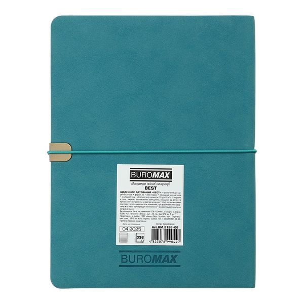 Щоденник датований Buromax 2026 А-5 Best гнучка обкладинка на гумці, кремовий папір, бірюза