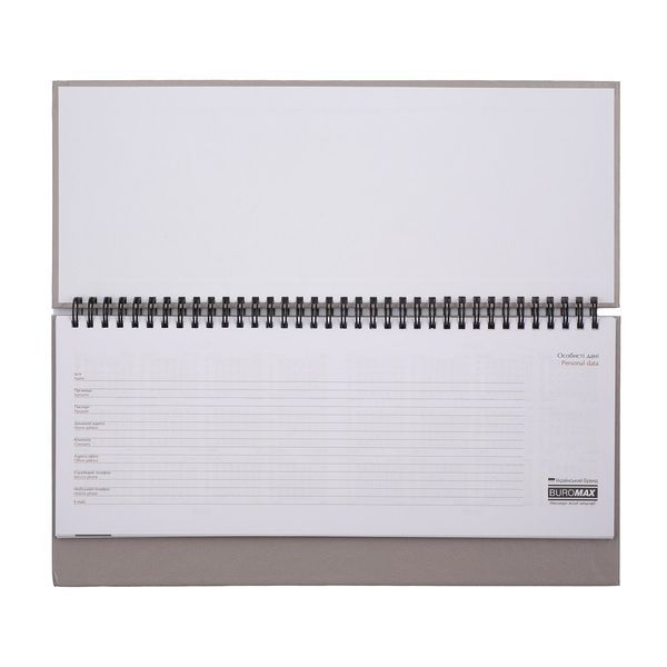 Тверда поліграфічна обкладинка з ламінацією soft touch планінга PARALLEL виконана в лаконічному, строгому дизайні зі стильним фольгуванням та візуальною текстурою натуральної шкіри. Розмір 320х125 мм 120 сторінок Тверда повнокольорова обкладинка з матовим ламінуванням Soft Touch та поліграфічними ефектами: вибіркове тиснення срібною фольгою Горизонтальна пружина Внутрішній блок: офсетний папір білого кольору щільністю 70 г/м² Друк блоку в 2 кольори: сірий і бордовий Дві мови блоку: українська, англійська Індивідуальна упаковка: прозорий пакет Структура внутрішнього блоку: Аркуш для внесення особистої інформації Календарі на 2025 - 2028 роки Планінг на 2026 рік Інформаційно-довідковий блок: національні, релігійні, професійні свята та пам'ятні дати, знаки зодіаку Дві сторінки (розворот) містять вертикально розміщені 7 днів тижня (субота та неділя в одному стовпчику) з організатором часу від 7:00 до 20:00, календар на рік та на поточний місяць, знак зодіаку, іменинників, свята та пам'ятні дати на кожен день, а також вільне поле для нотаток Алфавітна книга для внесення контактів Планінг BUROMAX - незамінний помічник в плануванні Вашого робочого та особистого часу!