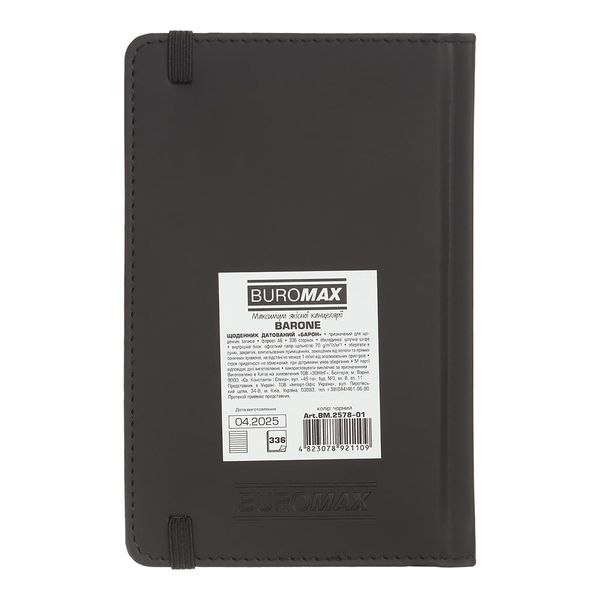 Щоденник датований Buromax 2026 А-6 Barone тверда обкладинка, на гумці, кремовий папір,чорний
