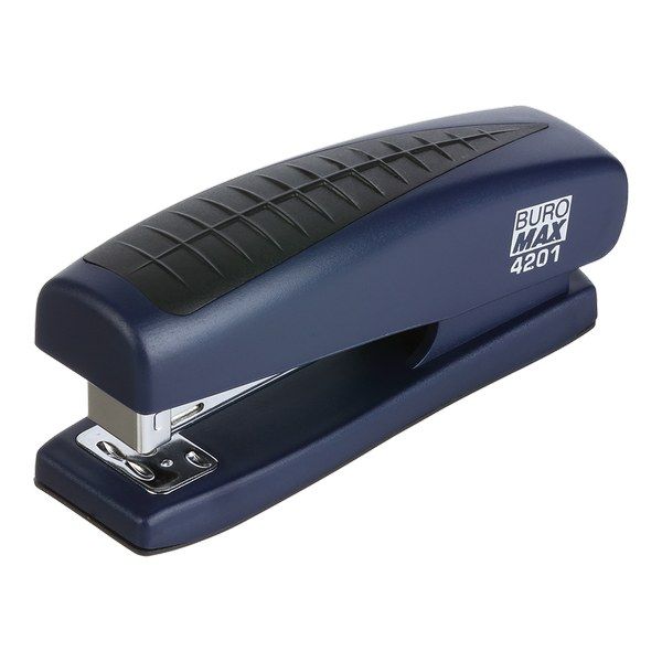 Пластиковий степлер BUROMAX з продуманим і ергономічним дизайном підкреслить індивідуальність і стане незамінним атрибутом при роботі з документами. Скріпляє заявлену кількість листів (20 листів паперу щільністю 80 г/м²) і навіть більше. Корпус виготовлений з пластика з рельєфною вставкою чорного кольору. Степлер підходить для щоденного використання як вдома, так і в офісі. Пробивна потужність 20 листів. Тип скріплення: закритий, відкритий, прямій. Скоба: №24/6, №26/6. Глибина закладки паперу 65мм. Розмір степлера 123х36х52мм.