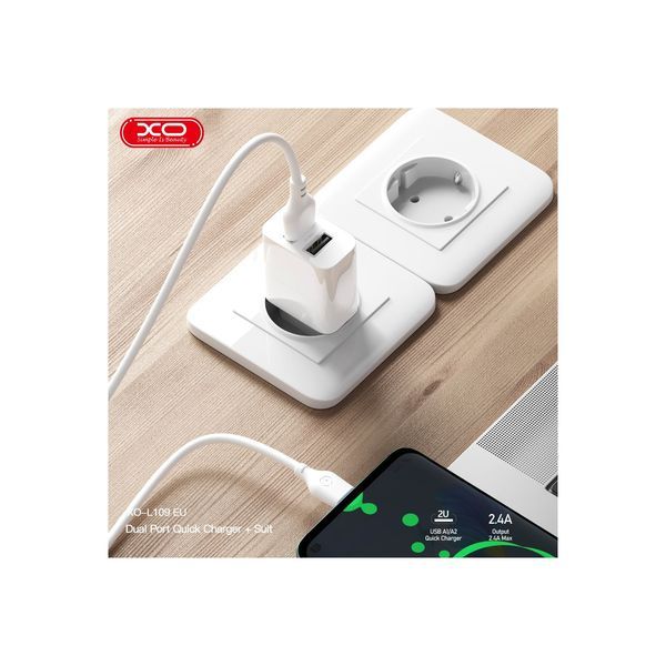 Зарядка мережева XO L109 - 12W Dual port USB-A (Білий)