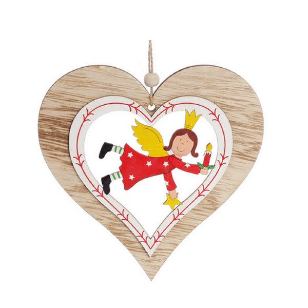 Сердце с ангелом 13см дерево подвеска