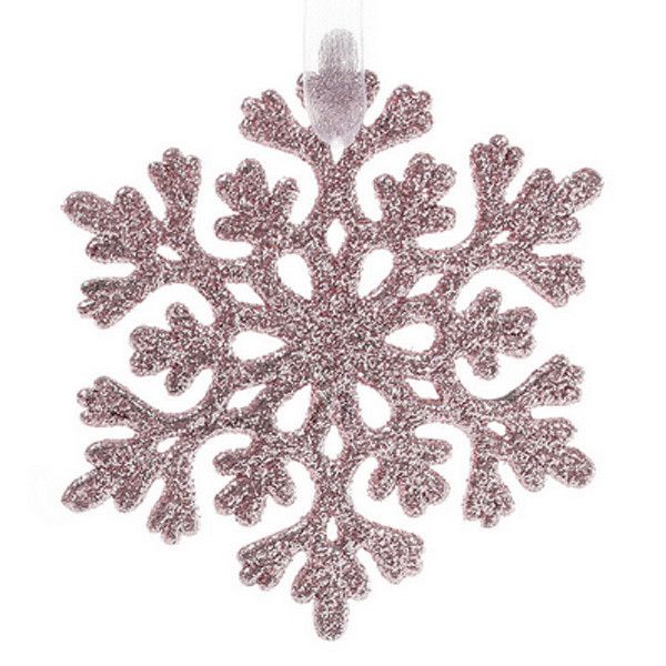 Снежинка 9см светло-розовая с глиттером пластик, подвеска