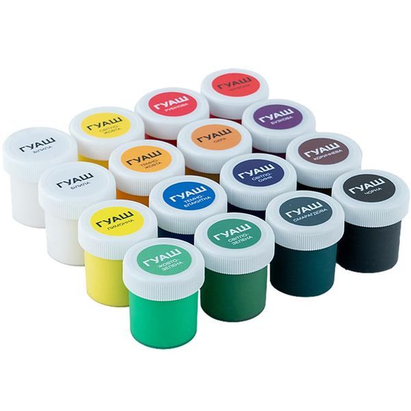 Гуашь Kite K-096 Classic Особенности: - гармоничная палитра – 16 ярких цветов в наборе; - удобный формат – баночки по 20 мл в картонной упаковке; - легкие в использовании – краски отлично смешиваются между собой; - приятная однородная текстура – не образуются сгустки и комочки; - безопасные для ребенка – натуральный состав и нейтральный аромат; - яркий дизайн вдохновляет на творчество.