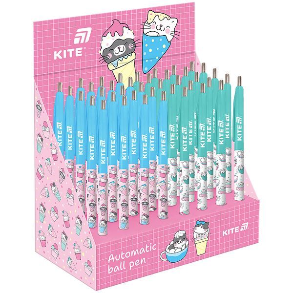 Ручка шариковая Kite Ice & Cup автоматическая, прорезиненный грип, синяя