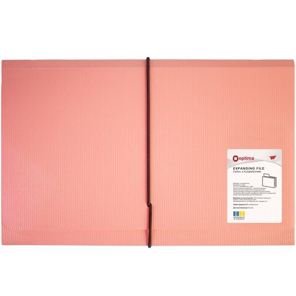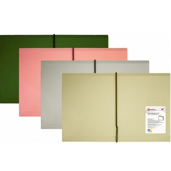 Папка пластиковая с расширением, 6 отделений, А5, Optima, 600 мкм, фактура "полоса", цвета - коралловый, какао, хаки, серый