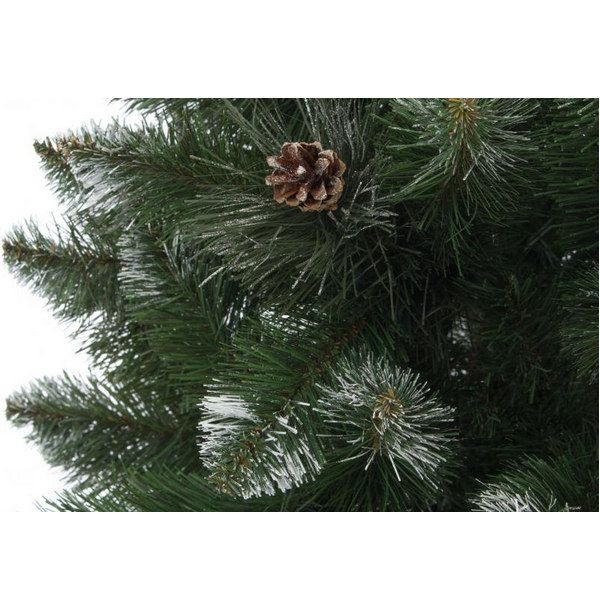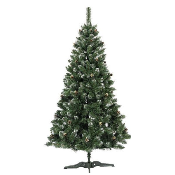 Искусственная ель на подставке высотой 1,9 метр. Основа елки - металлический ствол, покрытый ПВХ пленкой, которая соответствует основному цвету изделия. Подставка пластиковая, входит в комплект. Ветки дерева изготовлены из металлической проволоки, что даёт возможность гнуть ветки в разные стороны и тем самым придать дереву именно такой вид, который будет максимально соответствовать Вашей задумке. Красивое и пышное новогоднее дерево будет ежегодно наполнять дом радостью и благополучием в период новогодних праздников. Материал иголочек - ПВХ пленка (мягкий, гибкий материал). Особенную красоту ели придают заснеженные кончики веток, имеющие коническую форму. Дополнительно ветки украшены натуральными шишками. Удобна в сборке и разборке, не требует особого ухода. рекомендуется хранить в вертикальном положении. Все используемые материалы экологически чистые, не поддерживают горения. Упаковка - полиэтилен.