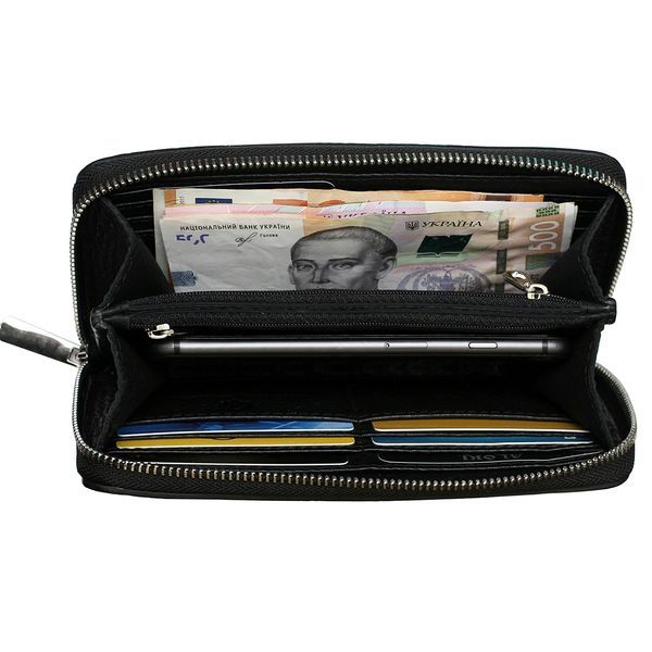 Горизонтальний жіночий гаманець ALORI 20,5х10,5х2,7см з натуральної шкіри. В цій моделі 2 основних відділи для купюр посередині (телефон міститься), 2 додаткові відділи для купюр з боків, 2 кишені на блискавці, 12 осередків для пластикових карток, 1 відділ для різних дрібниць. Гаманець застібається на бликвавці. Ручка у комплекті. Фірмова упаковка.