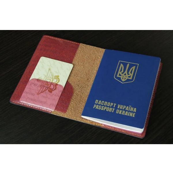Обкладинка з еко-шкіри для паспорта, закордонного паспорта з написом "PASSPORT" сліпим тисненням. Обкладинка також містить 2 кишені для пластикових карт. Розмір 13,5х9,5 см
