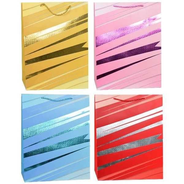 Пакет 18х23х8см паперовий кольоровий срібни полоси