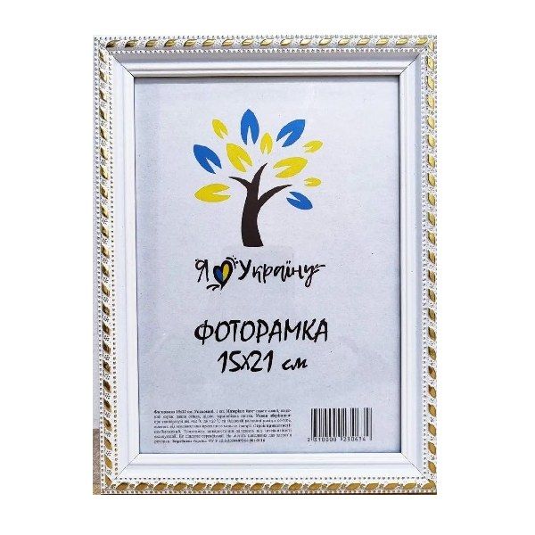 Фоторамка 15х21 біла з золотим обрамленням ніжка