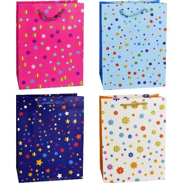Пакет 18х23х8см паперовий Зірки, Квіти, Горох