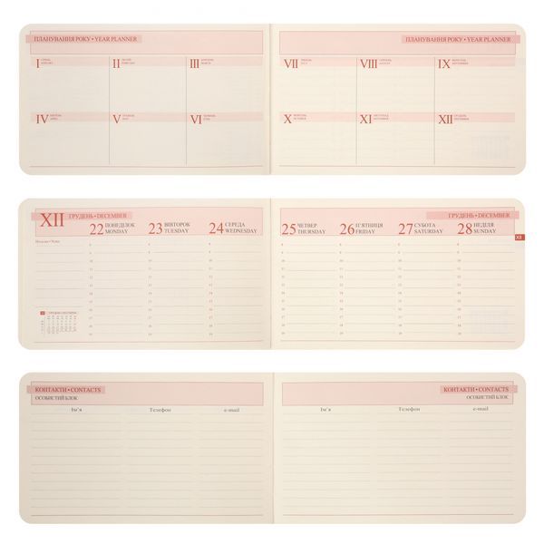 Щотижневик Leo Planner Fiore – ваш компактний огляд та організатор на весь тиждень. Завдяки невеликому, але доволі місткому розміру, можна розпланувати зустрічі та розставити пріоритети на весь тиждень на розвороті всього двох сторінок. М’яка обкладинка легка та гнучка, тому щоденник зручно носити із собою щодня. Чудовий вибір для мобільного стилю життя. PU зі сліпим та фольгованим тисненням — це поєднання стриманої елегантності та ефектного блиску, що створює візуальний контраст і підкреслює ваш витончений стиль. Паперовий блок продуманий до дрібниць для комфортного щоденного користування. Він налічує 128 сторінок, що забезпечує достатньо простору для щоденних записів, планів і нотаток. Папір щільністю 80 г/м² дозволяє комфортно писати ручкою чи олівцем без просвічування. Кремовий папір не втомлює очі навіть за тривалої роботи. Закруглені кути паперового блока не лише додають стильного вигляду, а й запобігають швидкому зношенню сторінок. Це практичне рішення для збереження ділового записника охайним у щоденному користуванні. Кольоровий паперовий зріз додає дизайнерського акценту та візуальної виразності. Стильне рішення для тих, хто цінує оригінальність. Характеристики: - Тип: датований - Формат / розмір: 10х17 - Тип обкладинки: м'яка - Матеріал обкладинки: PU зі сліпим та фольгованим тисненням Характеристики внутрішнього блоку: - Кремовий офсет, 80 г/м² 128 сторінок - Колір паперового зрізу: кольоровий - Календарі та довідково-інформаційний блок із корисними даними - Додаткові сторінки для та нотаток