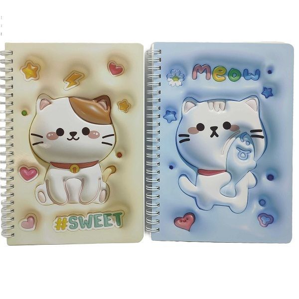 Блокнот А-5 60аркушів клітинка, спіраль збоку, Котик, обкладинка 3-D