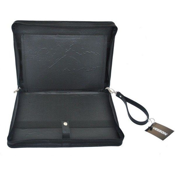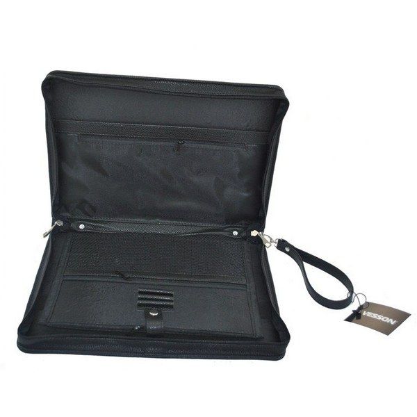 Папка для документів на блискавці. Виріб має одне основне відділення, у якому кілька внутрішніх відділень різного розміру, які можна використовувати для зберігання документів та інших речей. Частина кишень закривається на блискавку. Верх виробу виконаний з високоякісної екошкіри, яка відрізняється привабливим зовнішнім виглядом, приємною фактурою та зносостійкістю. Підкладка та внутрішніх відділень із міцних матеріалів. Крім того, для важливих дрібниць передбачено відділення із сітчастого матеріалу. Теку можна носити в руках або використовувати невелику ручку, яка кріпиться за допомогою надійного карабіна; при необхідності її можна прибрати всередину виробу або відстебнути.