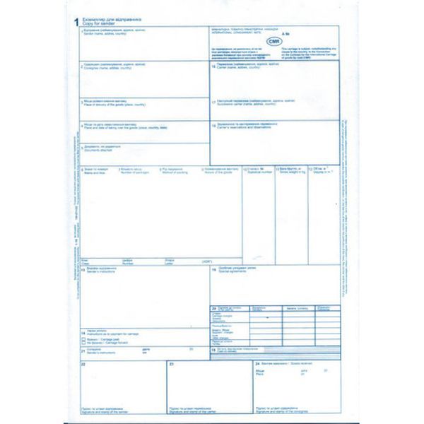 С/к Товаро-транспортна накладна A4 6арк. міжнародна Укр