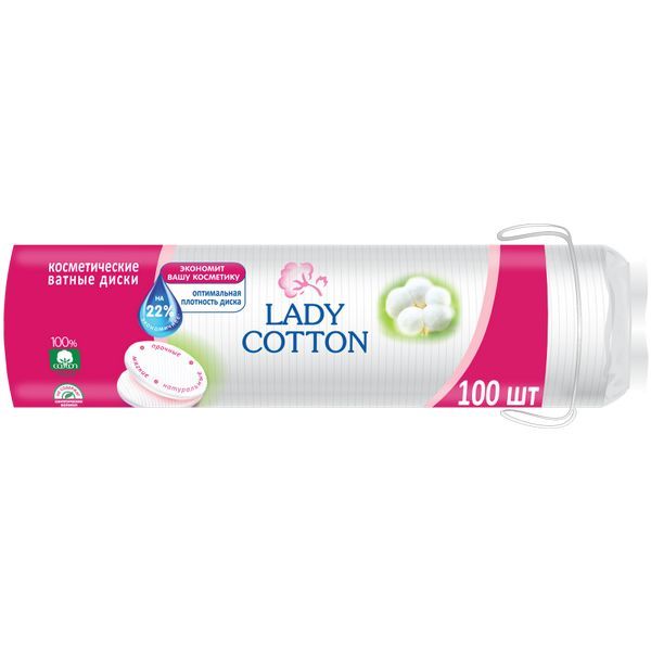 Ватні косметичні диски Lady Cotton (Леді Коттон) виготовлені з 100% бавовни і мають високу м'якістю, міцністю. Дуже добре підходять для щоденного використання. Не викликають алергічних реакцій і роздратування на шкірі. Будуть незамінні при наступних процедурах: Косметичних: зняття макіяжу, нанесення тоніків і інших косметичних засобів; Манікюру: зняття лаку для нігтів, масок по догляду за кутикулами і нігтьової пластини; Догляду за немовлятами: очищення ніжної шкіри малюка, обробка складочок; Гігієнічних процедур. Натуральність продукції підтверджена асоціацією Cotton Natural.