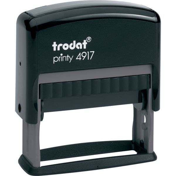 Прямокутне оснащення до штампу Trodat 4917. Надійна конструкція гарантує чітке проставлення відбитка. Міцний пластиковий корпус. Лёгкая замена подушки с помощью кнопочного механизма. Информационное окно демонстрирует весь оттиск в натуральную величину. Комплектується штемпельною подушкою Trodat 6/4817 синього кольору. Змінна подушка буває синього, фіолетового, чорного, червоного, зеленого кольорів та нефарбована.