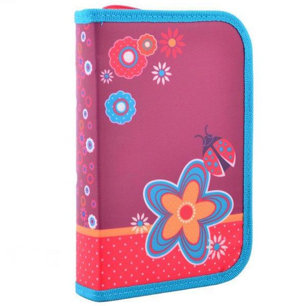 Пенал Smart 1відділення без наповнення, Flowers red, рожевий