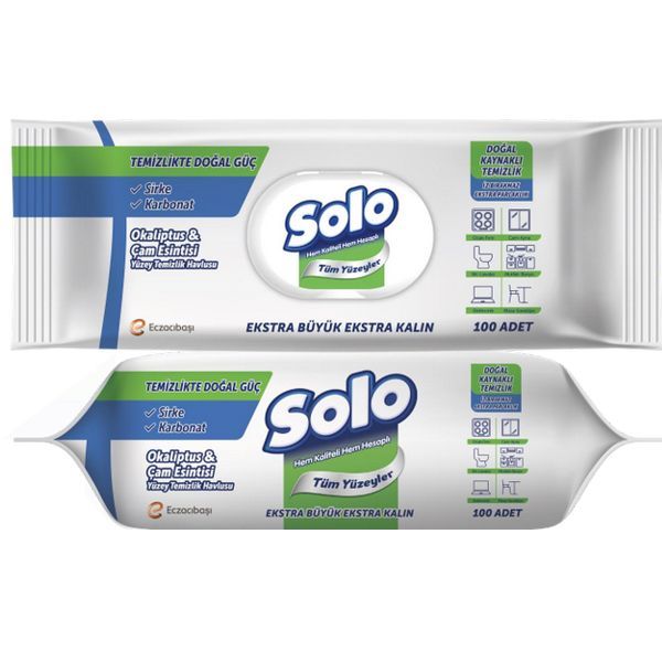 Серветки для прибирання, вологі Евкаліпт та Сосна 100шт, клапан Solo Natural Power
