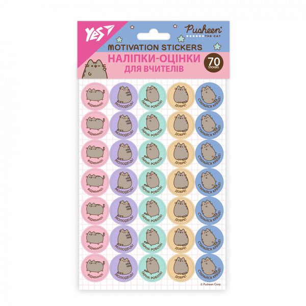Наліпки-оцінки 70шт круглі Yes Pusheen
