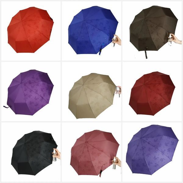 Чудова жіноча парасолька з чарівним проявом на 10 спиць з вуглепластика який має відмінну вітростійкість і зручну ручку. Чари парасольки проявляється при попаданні дощу на сухий купол при цьому відразу з'являється візерунок у вигляді квітів або іншого малюнка. Каркас парасольки виготовлений з високоміцних якісних матеріалів. Спеціальне покриття виключає виникнення корозії. Зонт має в наявності 10 спиць зі сталі, карбону і пластику, що надає йому хорошу вітростійкість. Висока щільність тканини купола і передове якість прийнятих барвників надають парасольці відмінні водовідштовхувальні властивості і довговічність. Завдяки цьому каркасу парасолька залишається цілим навіть якщо його не виверне значний порив вітру. Зручний дизайн прогумованої ручки під колір купола. На всіх парасольках проявляється один малюнок. Діаметр купола 99 см.