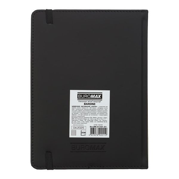 Щоденник датований Buromax 2026 А-5 Barone тверда обкладинка, кремовий папір, на гумці, чорний