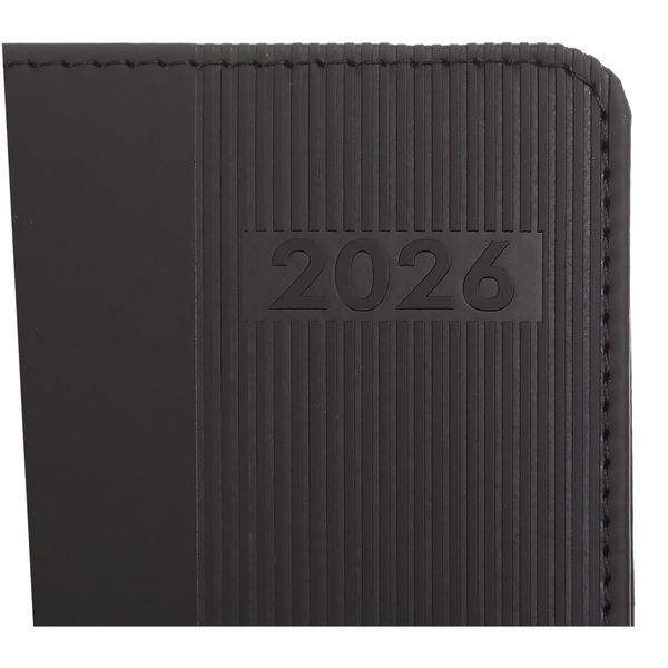 Жорстка обкладинка з гладкої штучної шкіри з поролоном щоденника BARONE виконана в лаконічному, стриманому стилі. Елементи оздоблення - сліпе тиснення року та краю обкладинки, що утворює фактурну поверхню, а також поздовжня гумка в колір обкладинки для фіксації щоденника в закритому положенні. Гармонійно доповнює дизайн тонований в колір обкладинки зріз внутрішнього блоку. Формат А5 336 сторінок Внутрішній блок: офсетний папір кремового кольору щільністю 70 г/м² Закладка-лясе в колір обкладинки Перфоровані куточки аркушів Друк блоку в 2 кольори: сірий і бордовий Дві мови блоку: українська, англійська Мапи України та Європи на форзацах Індивідуальна упаковка: картонна коробка Структура внутрішнього блоку: Сторінка для внесення особистої інформації Календарі на 2025 - 2028 роки Планінг на 2026 рік Інформаційно-довідковий блок: національні, релігійні, професійні свята та пам'ятні дати, знаки зодіаку, телефонні коди мобільних операторів та обласних центрів України, літерні автомобільні коди країн, таблиця відстаней між обласними центрами України, довідник систем вимірювання, міжнародні знаки відповідності, знаки догляду за одягом Датована сторінка на кожен день року з організатором часу від 7:00 до 21:00, календарем на поточний/наступний місяць, позначенням дня тижня, знаку зодіаку, іменинників Алфавітна книга для внесення контактів