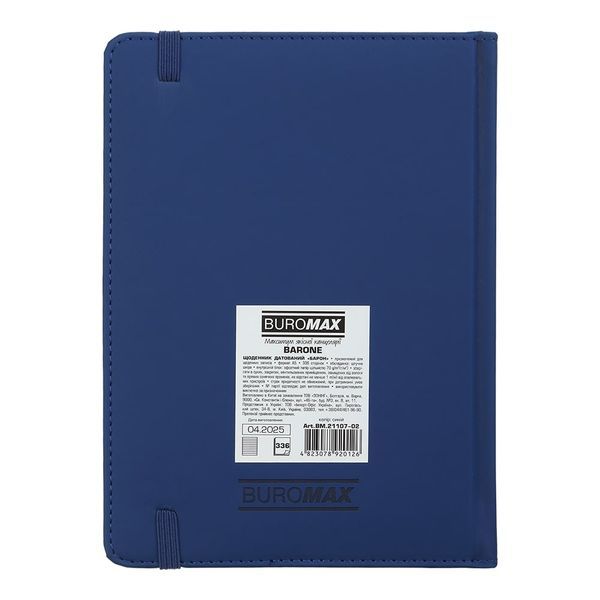 Щоденник датований Buromax 2026 А-5 Barone тверда обкладинка, кремовий папір, на гумці, синій