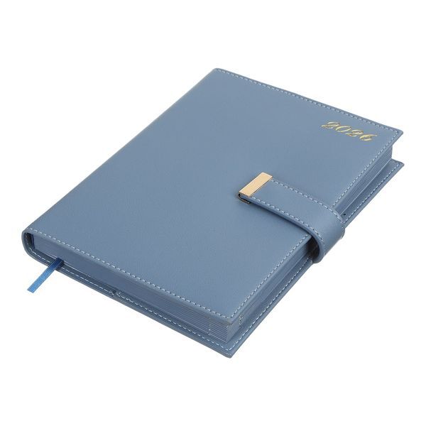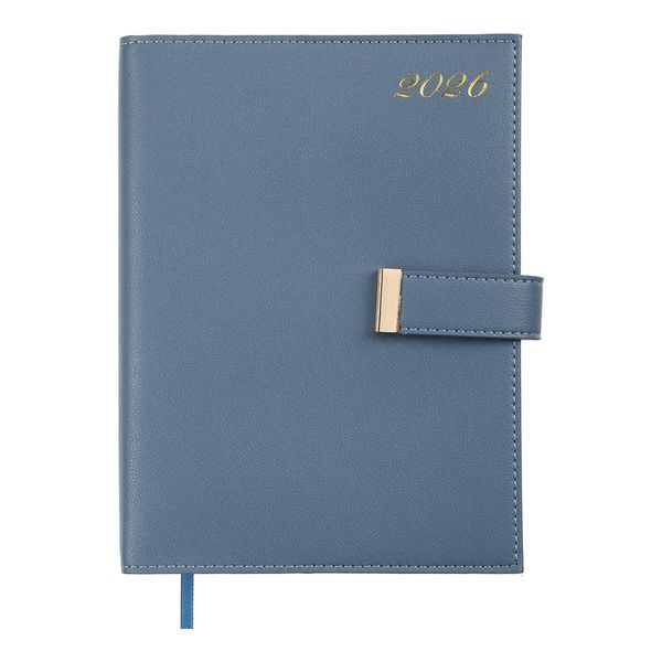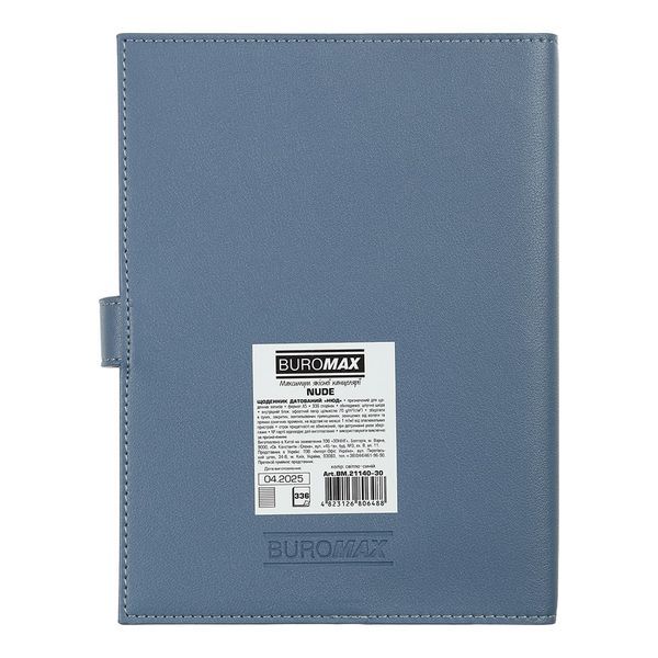 Щоденник датований Buromax 2026 А-5 Nude гнучка обкладинка, кнопка, кремовий папір, світло-синій