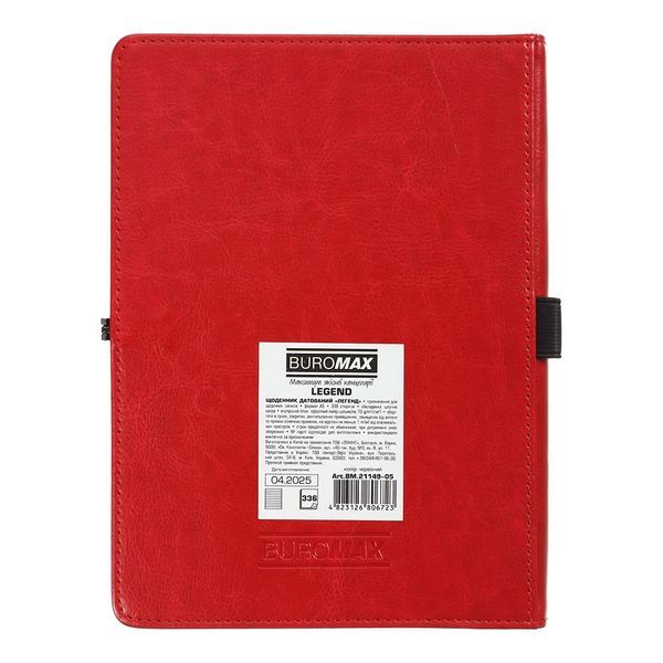 Щоденник датований Buromax 2026 А-5 Legend тверда обкладинка, магніт, кремовий папір, червоний