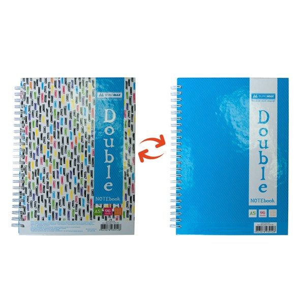 Записна книжка DOUBLE від BUROMAX - незвичайний та зручний варіант пружинних книг, з використанням двосторонніх обкладинок у варіаціях. Відмінно підходить для вирішення бізнес задач робітників, для школярів, студентів, а також для домашнього використання. Формат: А5 Внутрішній блок: офсетний білий папір щільністю 55 г/м² Двостороння тверда обкладинка з глянцевою ламінацією, що зручно для ведення записів з обох сторін книги Тип скріплення: вертикальна пружина збоку, дозволяє легко перевертати аркуші (все лягає рівно) та зручно писати на обох сторінках розгортки Кількість аркушів: 96 Лініювання: клітинка