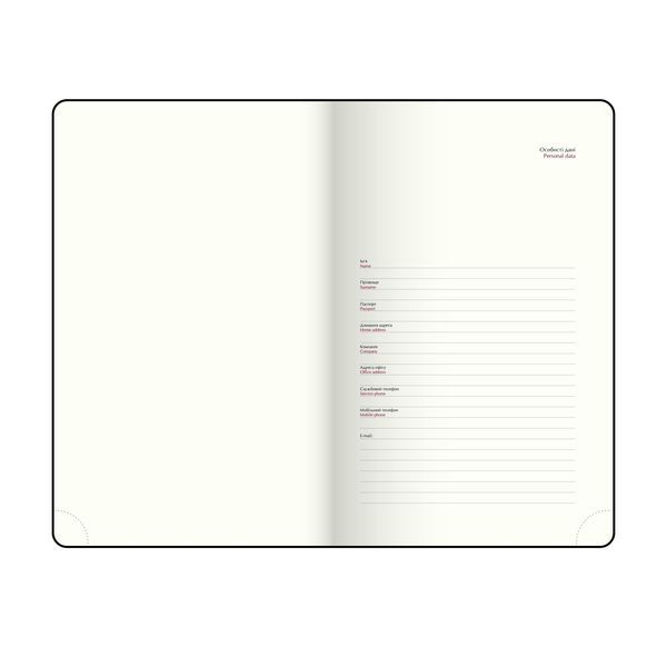 Жорстка обкладинка щоденника NAVIGATOR виконана зі штучної шкіри з поролоном. Завдяки широкій магнітній застібці, щоденник можна легко та швидко зафіксувати в закритому стані. Оригінальності щоденнику додає комбінація фактур та кольорів штучної шкіри на обкладинці, а також оформлення декоративними швами по периметру обкладинки та на стику матеріалів. Елегантний дизайн гармонійно доповнює тонований зріз в колір обкладинки і сліпе тиснення року на застібці. Формат А6 336 сторінок Внутрішній блок: офсетний папір кремового кольору щільністю 70 г/м² Закладка-лясе в колір обкладинки Перфоровані куточки аркушів Друк блоку в 2 кольори: сірий і бордовий Дві мови блоку: українська, англійська Мапи України та Європи на форзацах Індивідуальна упаковка: картонна коробка Структура внутрішнього блоку: Сторінка для внесення особистої інформації Календарі на 2025 - 2028 роки Планінг на 2026 рік Інформаційно-довідковий блок: національні, релігійні, професійні свята та пам'ятні дати, знаки зодіаку, телефонні коди мобільних операторів та обласних центрів України, літерні автомобільні коди країн, таблиця відстаней між обласними центрами України, довідник систем вимірювання, міжнародні знаки відповідності, знаки догляду за одягом Датована сторінка на кожен день року з організатором часу від 7:00 до 21:00, календарем на поточний/наступний місяць, позначенням дня тижня, знаку зодіаку, іменинників Алфавітна книга для внесення контактів Щоденник BUROMAX - незамінний помічник в плануванні Вашого робочого дня, перевірений часом! На цій моделі щоденника рекомендується тиснення сліпим методом та методом фольгування.