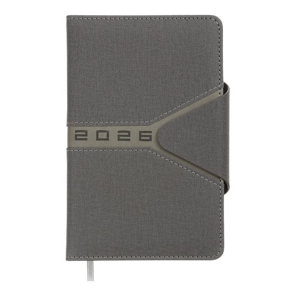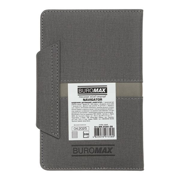 Щоденник датований Buromax 2026 А-6 Navigator тверда обкладинка, магніт, кремовий папір, сірий