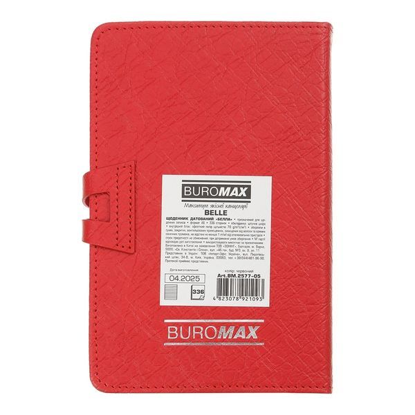 Щоденник датований Buromax 2026 А-6 Belle тверда обкладинка, кремовий папір, червоний
