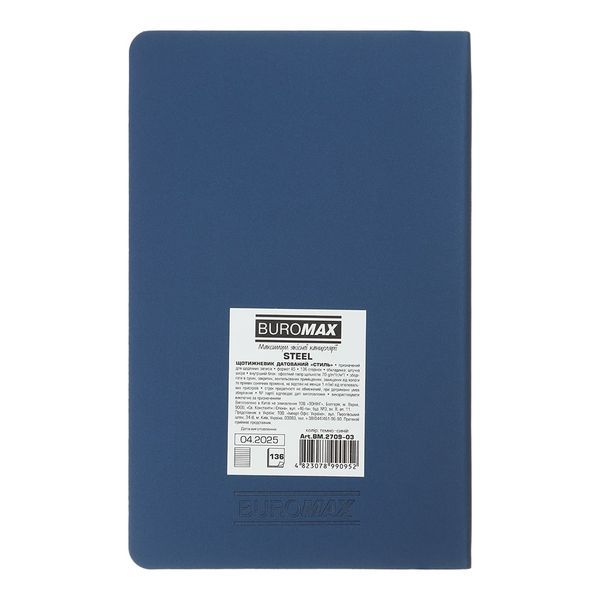 Тижневик датований Buromax 2026 А-5 Steel гнучка обкладинка, кремовий папір, темно-синій