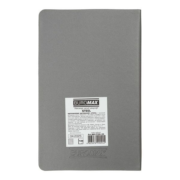 Тижневик датований Buromax 2026 А-5 Steel гнучка обкладинка, кремовий папір, срібний