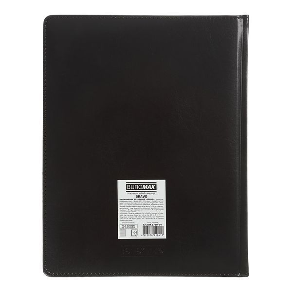 Жорстка обкладинка щотижневика BRAVO виготовлена з гладкої штучної шкіри, з поролоном. На лицьовій стороні - тиснення року сліпим методом. Тонування зрізу золотом додає вишуканий акцент. Класичний та стриманий дизайн стане відмінним доповненням корпоративного стилю компанії. Великий формат дозволяє не тільки планувати, але й робити змістовні нотатки та записи. Формат А4 136 сторінок Внутрішній блок: офсетний папір кремового кольору щільністю 70 г/м² Закладка-лясе в колір обкладинки Перфоровані куточки аркушів Друк блоку в 2 кольори: сірий і бордовий Дві мови блоку: українська, англійська Мапи України та Європи на форзацах Індивідуальна упаковка: картонна коробка Структура внутрішнього блоку: Сторінка для внесення особистої інформації Календарі на 2025 - 2028 роки Планінг на 2026 рік Інформаційно-довідковий блок: національні, релігійні, професійні свята та пам'ятні дати, знаки зодіаку, телефонні коди мобільних операторів та обласних центрів України, літерні автомобільні коди країн, таблиця відстаней між обласними центрами України, довідник систем вимірювання, міжнародні знаки відповідності, знаки догляду за одягом На одній сторінці вертикально розміщено три/чотири дні тижня (субота і неділя - вертикальне розташування на одній частині), з організатором часу від 7:00 до 21:00, вказівкою місяця, року, дня тижня та дати, календар на поточний/наступний місяць, іменинники, знаки зодіаку, свята та пам'ятні дати Алфавітна книга для внесення контактів Щотижневик BUROMAX - незамінний помічник в плануванні Вашого робочого часу! На цій моделі щотижневика можливе тиснення сліпим методом і методом фольгування.