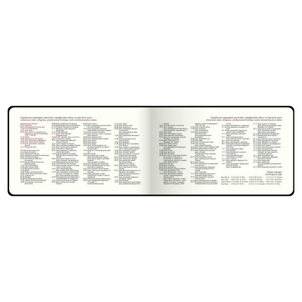 Жорстка обкладинка щотижневика BRAVO виготовлена з гладкої штучної шкіри, з поролоном. На лицьовій стороні - тиснення року сліпим методом. Тонування зрізу золотом додає вишуканий акцент. Класичний та стриманий дизайн стане відмінним доповненням корпоративного стилю компанії. Кишеньковий розмір щотижневика робить його постійним супутником свого власника, він не займе багато місця навіть у маленькій сумці, може вміститися в кишеню і завжди буде під рукою. Розмір 153х87 мм (кишеньковий) 128 сторінок Внутрішній блок: офсетний папір кремового кольору щільністю 70 г/м² Закладка-лясе в колір обкладинки Перфоровані куточки аркушів Друк блоку в 2 кольори: сірий і бордовий Дві мови блоку: українська, англійська Індивідуальна упаковка: картонна коробка Структура внутрішнього блоку: Сторінка для внесення особистої інформації Календарі на 2025 - 2027 роки Інформаційно-довідковий блок: національні, релігійні, професійні свята та пам'ятні дати, знаки зодіаку, літерні автомобільні коди країн, таблиця відстаней між обласними центрами України, довідник систем вимірювання, міжнародні знаки відповідності, знаки догляду за одягом На одній сторінці вертикально розміщено три/чотири дні тижня, з організатором часу від 8:00 до 20:00, вказівкою місяця, дня тижня та дати, іменинників, знаку зодіаку, свят та пам'ятних дат Алфавітна книга для внесення контактів Щотижневик BUROMAX - незамінний помічник в плануванні Вашого робочого часу! На цій моделі щотижневика можливе тиснення сліпим методом і методом фольгування.
