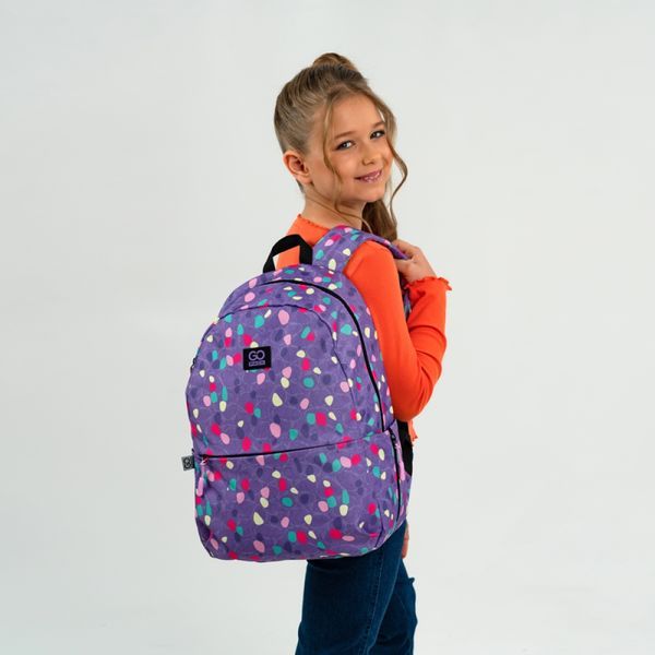 Рюкзак GoPack GO25-188M-2 — справжній маст-хев для підлітків та молоді! Легкий та комфортний рюкзак для школярів, студентів та шукачів пригод у міських джунглях! Виглядає круто, тримає форму й завжди готовий до активного розпорядку дня. Одне велике відділення, де поміститься все від гаджетів до перекусів, плюс окрема кишеня для ноутбука — для тих, хто не зупиняється ні на мить. Секретні схованки? Є! Прихована кишеня на спинці для особливих скарбів. Це більше, ніж просто рюкзак — це стильна і функціональна «база», що завжди поруч! Сучасний принт із родзинкою: виразний, щоб привернути увагу, і водночас універсальний, щоб підійти для будь-якого повсякденного стилю. Рюкзак, що стане улюбленим компаньйоном у будь-яких справах. Модель рекомендована для школярів від 9 років, на зріст від 130 см. Особливості рюкзака: Комфортна ущільнена спинка. Зручні S-подібні лямки. Просторе та містке основне відділення. Фронтальна кишеня для важливих дрібниць. Кишеня для ноутбука чи планшета. Прихована кишеня в спинці – для невеличких секретиків. Бічні кишені на блискавці. У застебнутому положенні можна використовувати для зберігання чогось невеликого і плоского, а у відкритому — в кишеню легко поміститься пляшечка з водою або термос. Дизайн рюкзака та його принт легко впишеться у модний стиль тінейджера. Застібки надійно вшиті, легко та плавно відкриваються. Ущільнене дно – надійне та стійке. Світловідбивні елементи для безпеки в темну пору доби. Ручка-петля для зручного зберігання рюкзака. Основний матеріал та матеріал підкладки — міцний та зносостійкий поліестер.